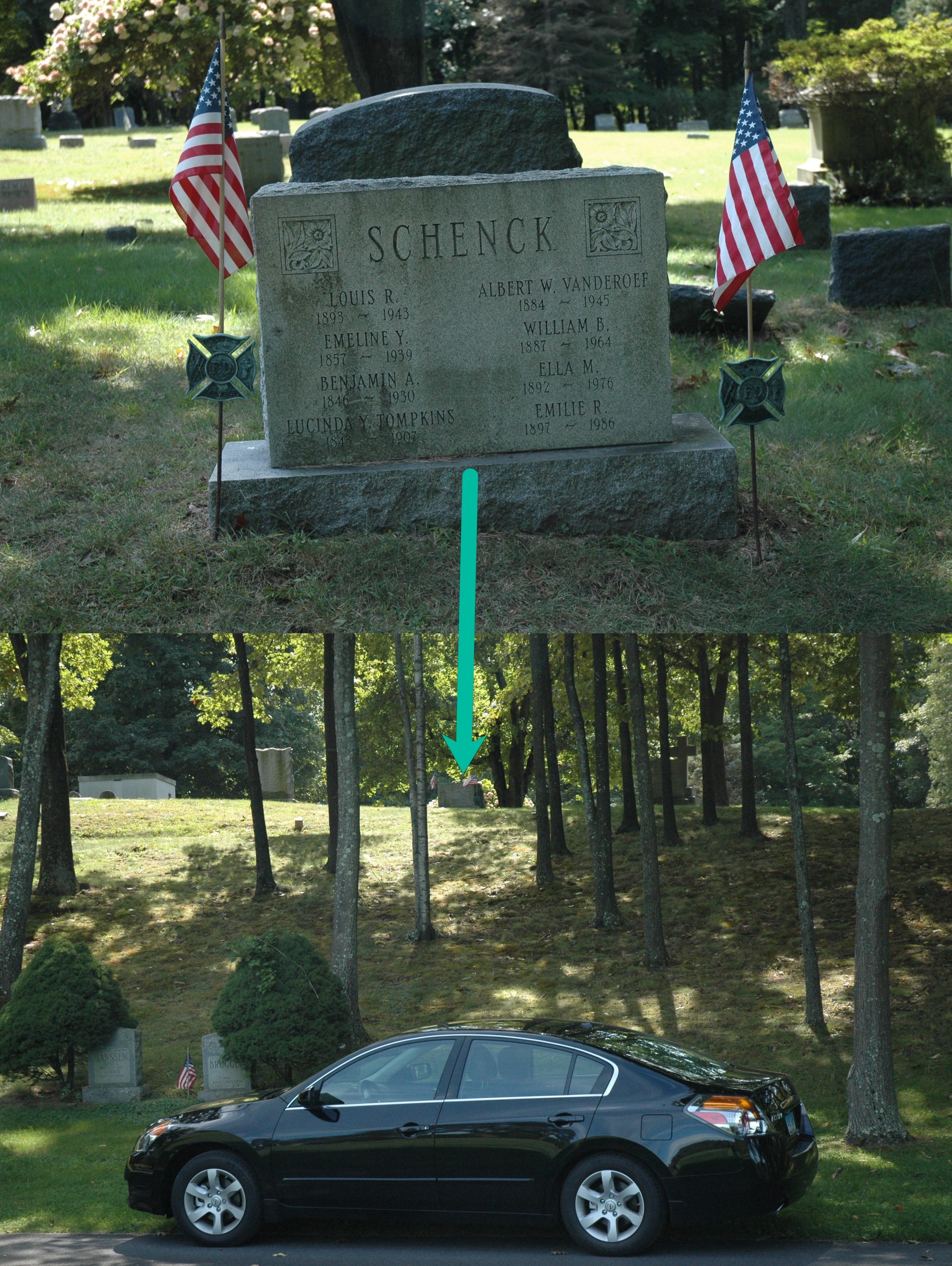 This is a story I have not told before... but one that Yerks cousin Gibby Iannotti will appreciate. Many years ago I learned from Gibby of a gravestone of one of her great ancestors. It may be her great x2 Grandparents. Emeline Yerks married Benjamin Schenck. She indicated that their headstone also has someone named