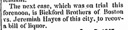 1868 - Jeremiah Hayes Appears as an "Off the Farm" Pauper |